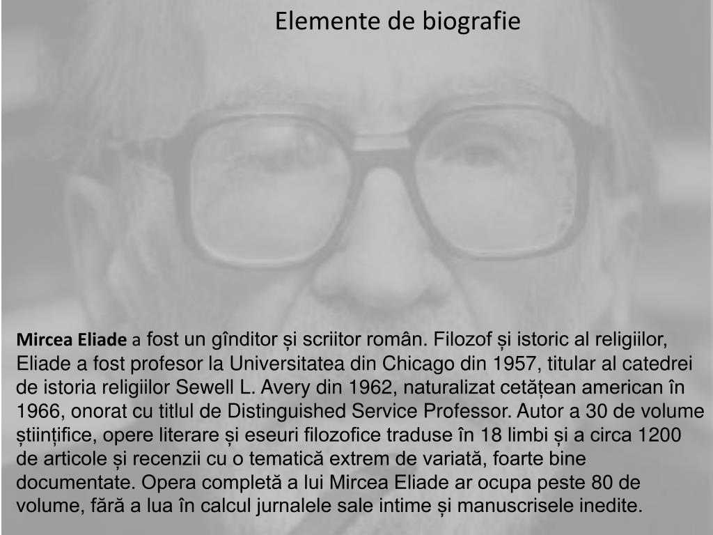 22 aprilie 1986, chicago), a fost istoric al religiilor, scriitor de ficțiune, filozof și ….. (will rogers) atunci cand sunt fericiti, oamenii nu mai baga de seama daca in jurul lor stapaneste vara sau iarna. Experiența este singura în stare să ne ofere. "zoveel mensen hebben eliade verweten dat hij niet in india is gebleven... Wij moeten ons integendeel verheugen, omdat hij aanvaard heeft ook zichzelf te compromitteren, hier bij ons, en zien daarin een belangrijkere verzaking dan de contemplatieve verzaking.